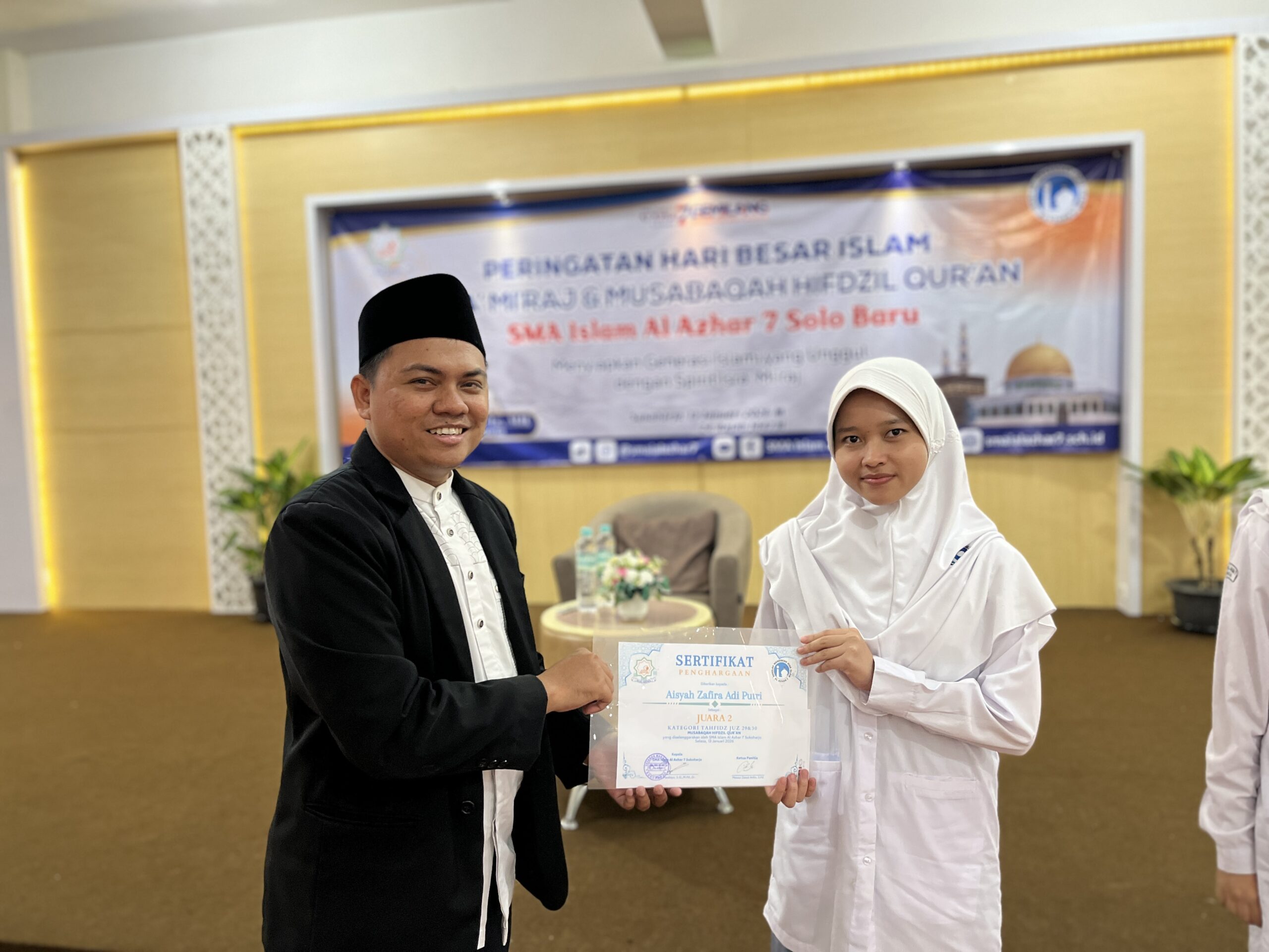 Alhamdulillah, pada Selasa, 13 Januari 2025, SMA Islam Al Azhar 7 Sukoharjo telah menyelenggarakan kegiatan Musabaqah Hifdzil Qur’an (MHQ) yang dirangkaikan dengan Kajian Peringatan Hari Besar Islam (PHBI) Isra Mi’raj Nabi Muhammad ﷺ. Kegiatan ini berlangsung dengan suasana yang khidmat, tertib, dan penuh antusiasme dari seluruh murid. Acara semakin bermakna dengan hadirnya Ustadz Wildan Jauhari, Lc., M.H., yang menyampaikan kajian tentang makna, hikmah, dan pesan spiritual dari peristiwa Isra Mi’raj, khususnya dalam membangun kedisiplinan ibadah dan akhlak mulia di kalangan murid.